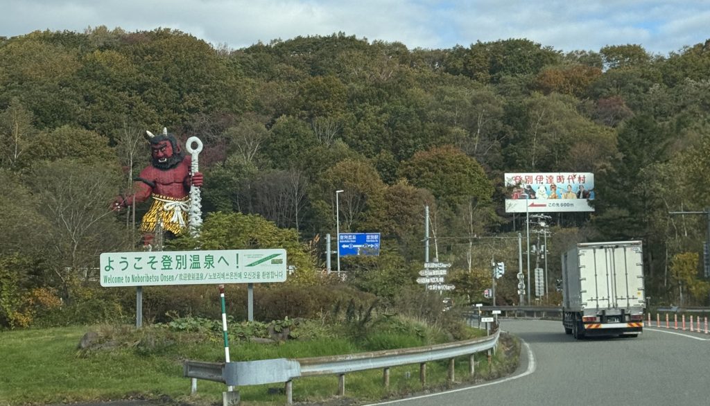高速道路をおりてすぐ、大きな鬼が歓迎してくれていました♪